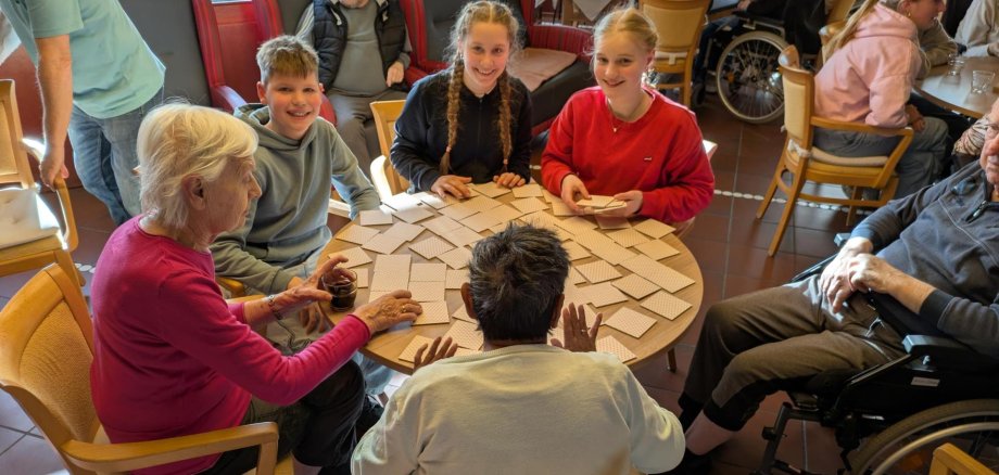 Nekateri učenci 7. in 10. razreda so preživeli prijetno popoldne s prebivalci centra za starejše občane Bethesda, kjer so igrali igre Ludo, 4 zmage, domino in sestavljanke. Naša naslednja dejavnost bo glasbeno popoldne. Če želite sodelovati, se obrnite na gospo Tapken.